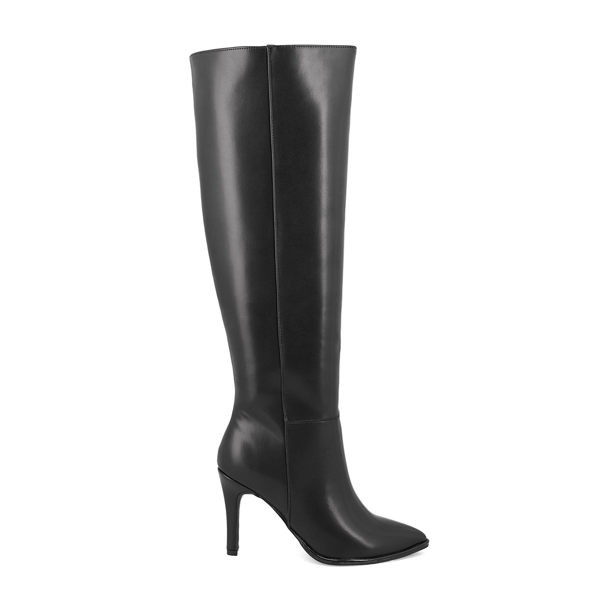 Make a bold entrance with Alaya. This knee-high boot is crafted from vegan leather and features a half zip for a comfortable fit. Standing tall on a 3.5-inch pump and a 17-inch shaft—she’s not here to blend in.