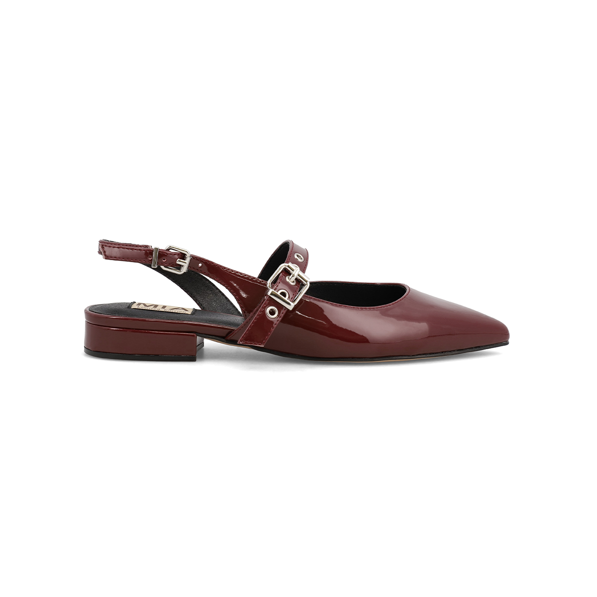 Stay on trend with this sleek yet sophisticated flat. Aree is crafted from patent material available in a fun metallic or basic fall hues. The almond toe adds a refined touch, while the slingback silhouette and delicate adjustable buckle offers a comfortable fit. Perfect for dressing up your work wear or adding polish to an evening look.