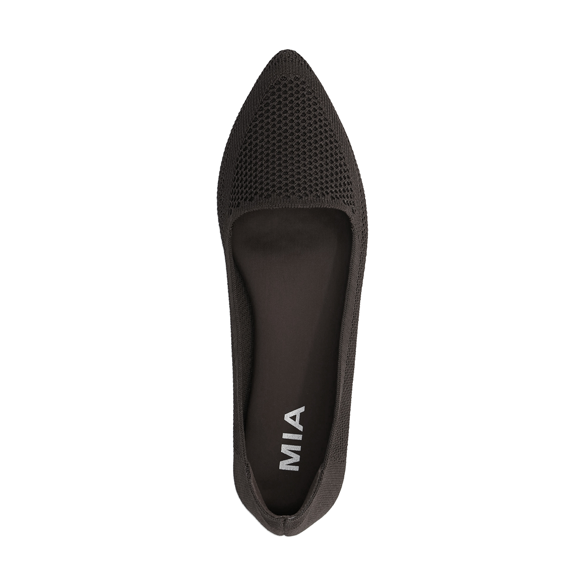 Slip into comfort wearing our CORRINE. Featuring our stretch knit material and pointed toe design, this modern flat silhouette is finished on our unique anatomically contoured footbed, perfect for all day wear.