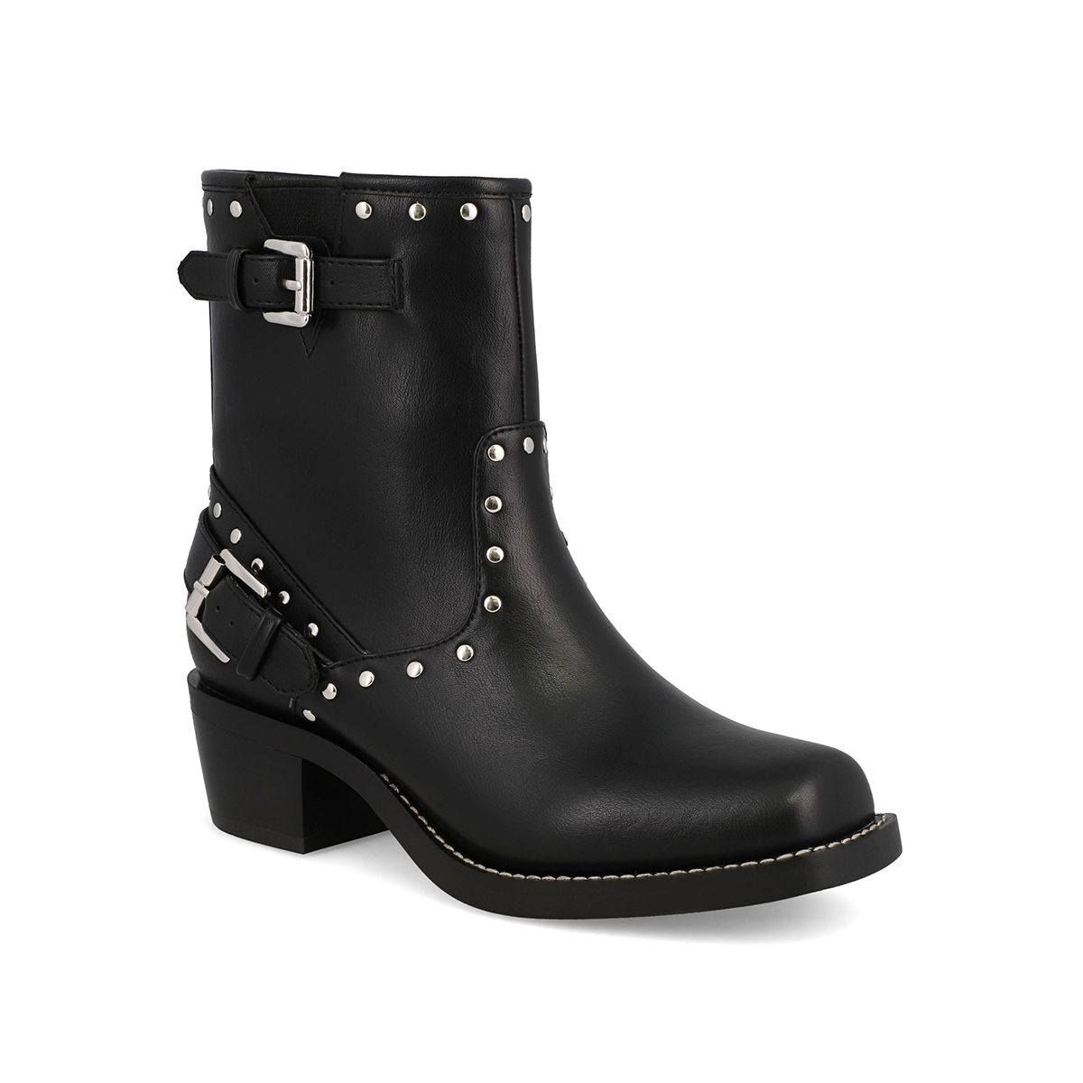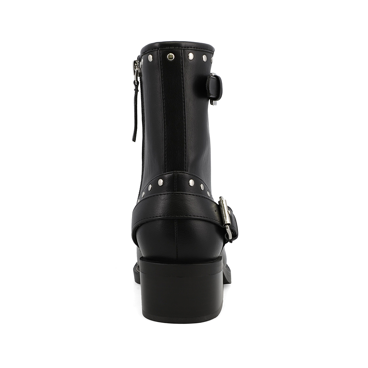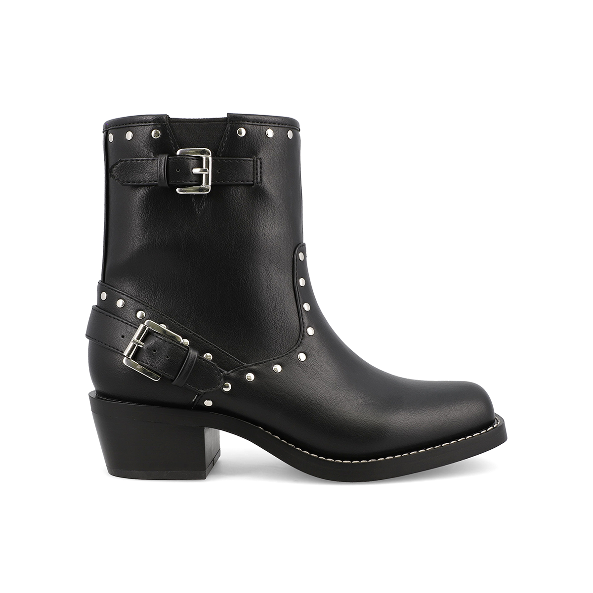 Add a bold edge to your look with Delores. This moto-inspired boot is crafted from sleek, vegan leather and finished with silver-tone buckles, stud detailing, and a side zipper for easy wear and extra attitude. Set on a 2-inch block heel, it nails the tough-luxe look with effortless style.