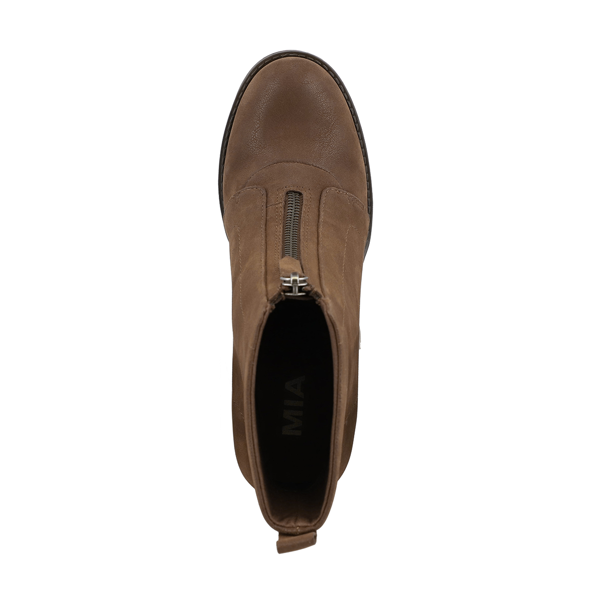 You're about to love boot weather with Fabiola—a playful bootie that brings confidence and sass to every step. Crafted from vegan leather, she features a convenient front zipper and a comfortable 2.3-inch heel. With a warm brown sole, Fabiola effortlessly combines cozy charm and chic appeal for all your fall adventures.