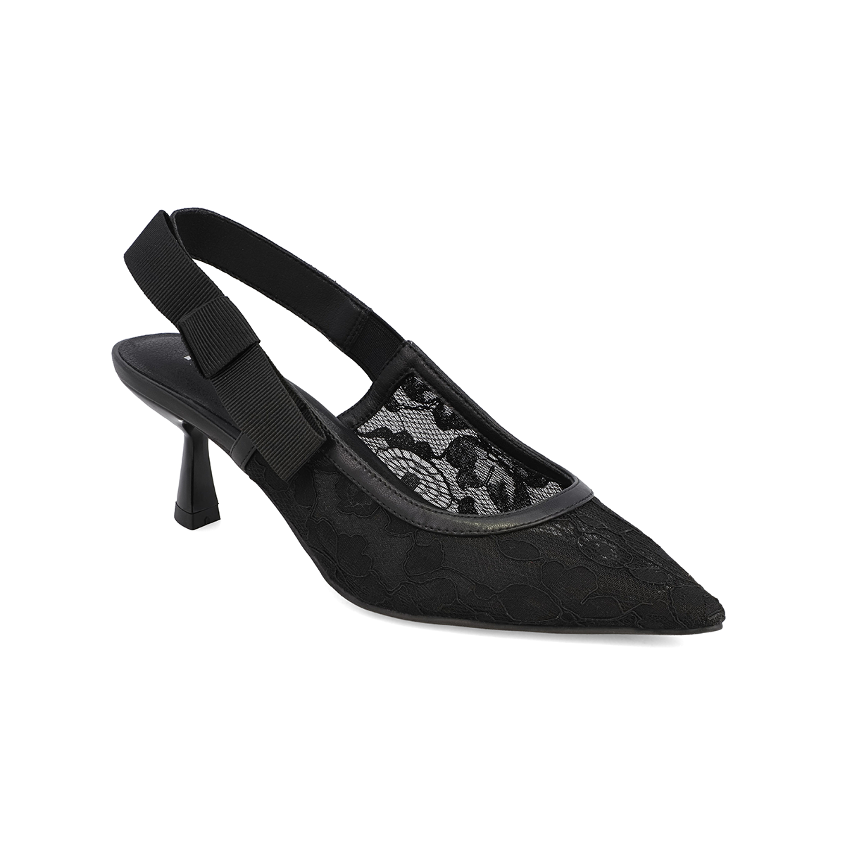 Meet Naida, the slingback heel of our dreams. This 2.5-inch pump features a delicate black lace exterior and a pointed toe for a touch of drama. She's a no-brainer for date nights or any kind of event.